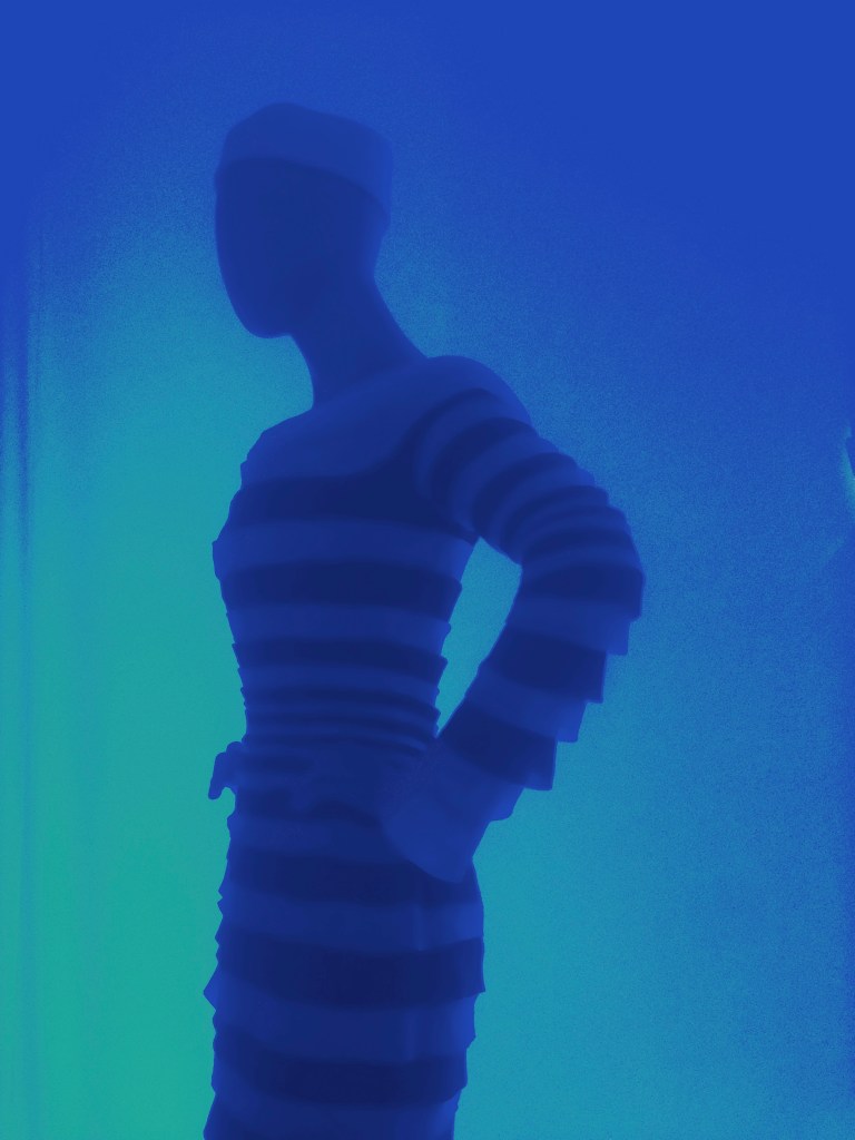 I manichini, rivestiti dei sontuosi abiti di Gautier e circondati dalla luce di un acquario, rivelano la loro vera natura di ex-voto, immagini sacre della società del capitale. In un processo di continui richiami, gli spazi della mostra sono una passerella dove a sfilare è il nostro desiderio. Un desiderio che si nasconde, che viene ostentato, che cade e ricade sotto la superficie dell’acqua.
