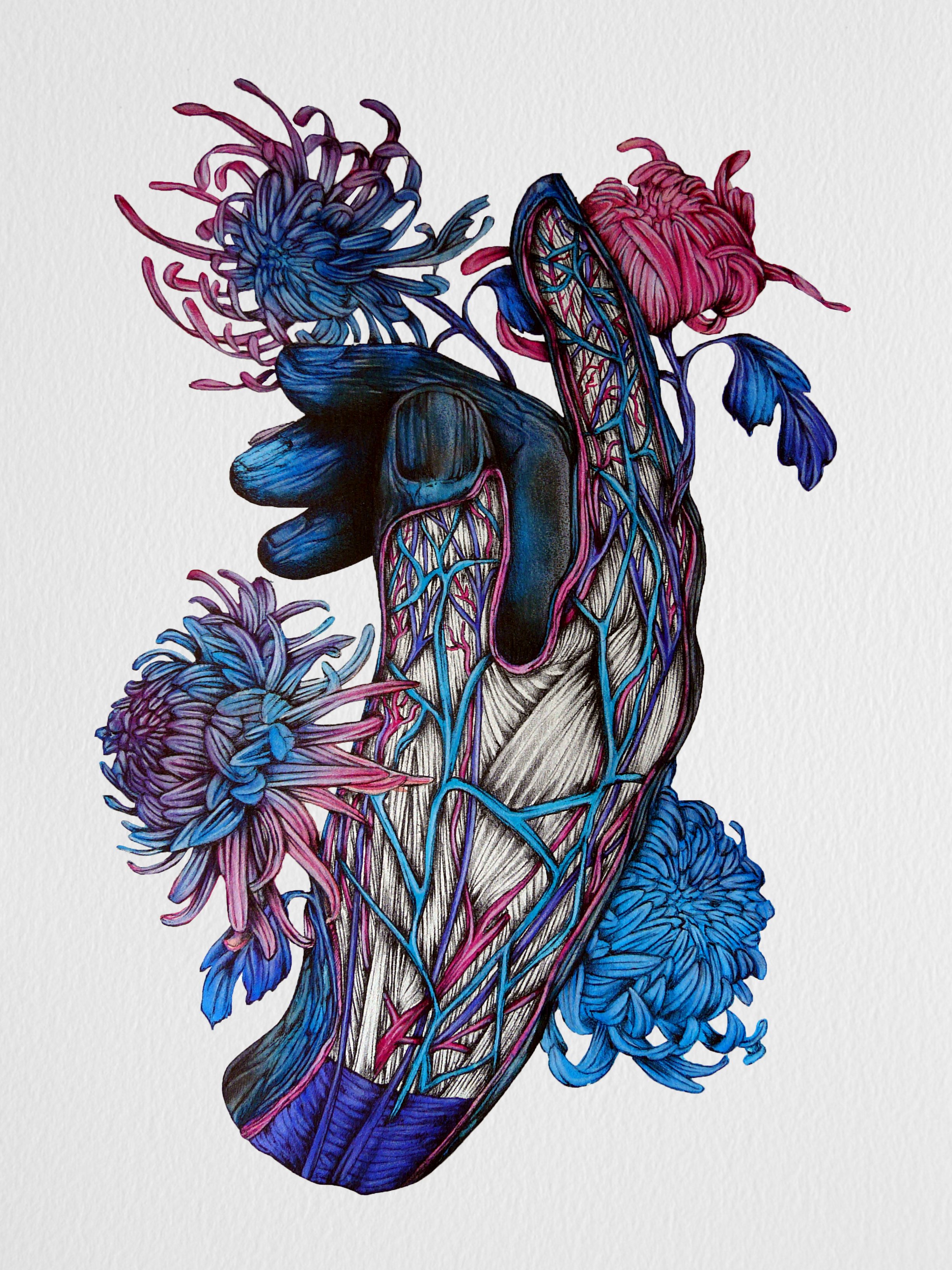The engraving slips on the pale and hairless skin, it opens the superior layer into a V revealing the stripped red of the fibers underneath. The nervous wounds and the bleeding are to be avoided. I’m going around the anatomical reliefs, I’m going through the flesh expanses, the dark and ironic rivulets, the gaped landslide of the glandular, gem-like, epithelium . I let the flesh purge, so that the cut is surgical and precise. I have a method. I cut out the quarters from the middle parts, the anterior and posterior ones.