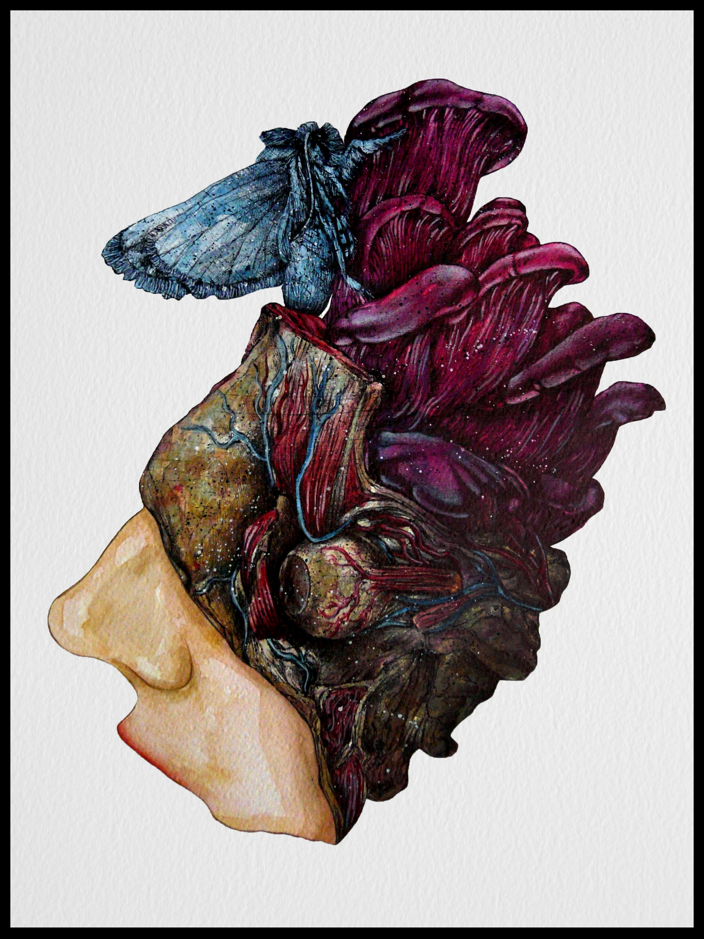 La carne risponde con una piccola scossa, si divarica mostrandomi l’interno concavo e pieno, rivestito dal costato simmetrico. Sento l’eco della vibrazione scorrere sulle mie dita.