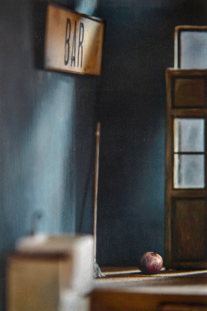 La parola, attraverso il suo sguardo, si trasfigura in spazio poetico e concreto allo stesso tempo; spazio dentro il quale i personaggi del racconto, in questo caso Ester Leo, prendono vita. Così la storia di una vita si amplia, si riempie di oggetti dimenticati, di attese, di stratificazioni di memoria che l’artista coagula in un mucchietto di sabbia dentro il quale galleggia un televisore rotto, per sempre fermo sulla stessa immagine; in una melagrana; nella pagina di un giornale.