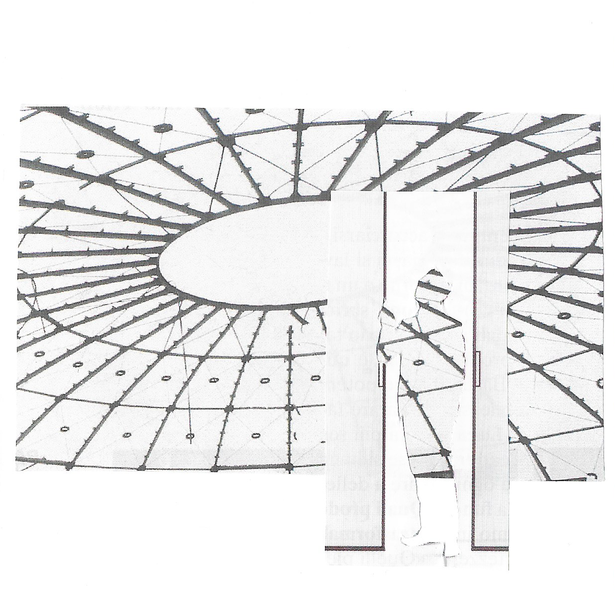 The matter of Camilla Senni’s illustrations is the void, the incompleteness, and the fragment. Her collages are not meant to fill the sheet but to show it naked: a way to oppose horror vacui through a process of subtraction to which the line acts as a counterpoint. It is the trace of a pencil that connects circles and rectangles, and it is an invitation to wander through nonsense rather than a map. A nonsense that leads the arbitrary composition of the bodies, landscapes, architectural structures as it hits the observer with the same unbearable white of Claudio Morandini’s words.