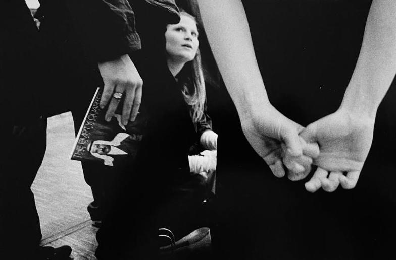Negli scatti i corpi intessono un dialogo. Si inseguono, si toccano, si aprono al racconto di una storia. Come nella fotografia delle tre ballerine, che, citando Degas, attendono dietro le quinte di entrare in scena, i profili si stagliano nel buio, i volti esprimono desiderio, paura, concentrazione. Il loro avvicinarsi o scostarsi è solo un momento; frammento nel gioco di continui ritorni che è l’esistenza.