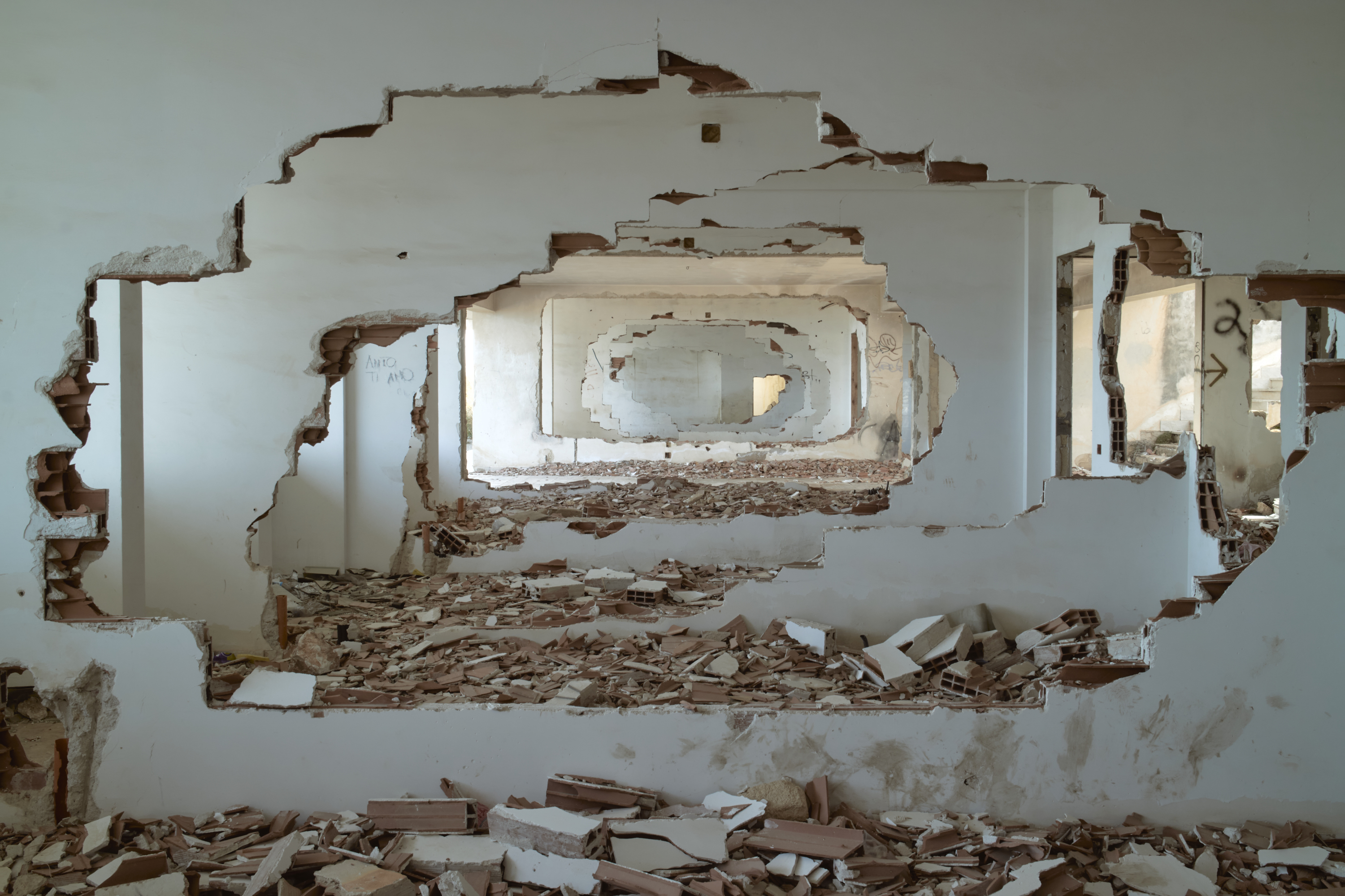 Quando l’obiettivo di Cucchiara si ferma sull’architettura è per ritrarre il cantiere o la rovina; anche nei casi in cui lo spazio è integro, gli scatti giocano a rompere l’unità, a aprire al suo interno una crepa.