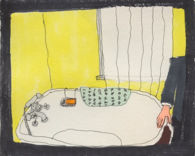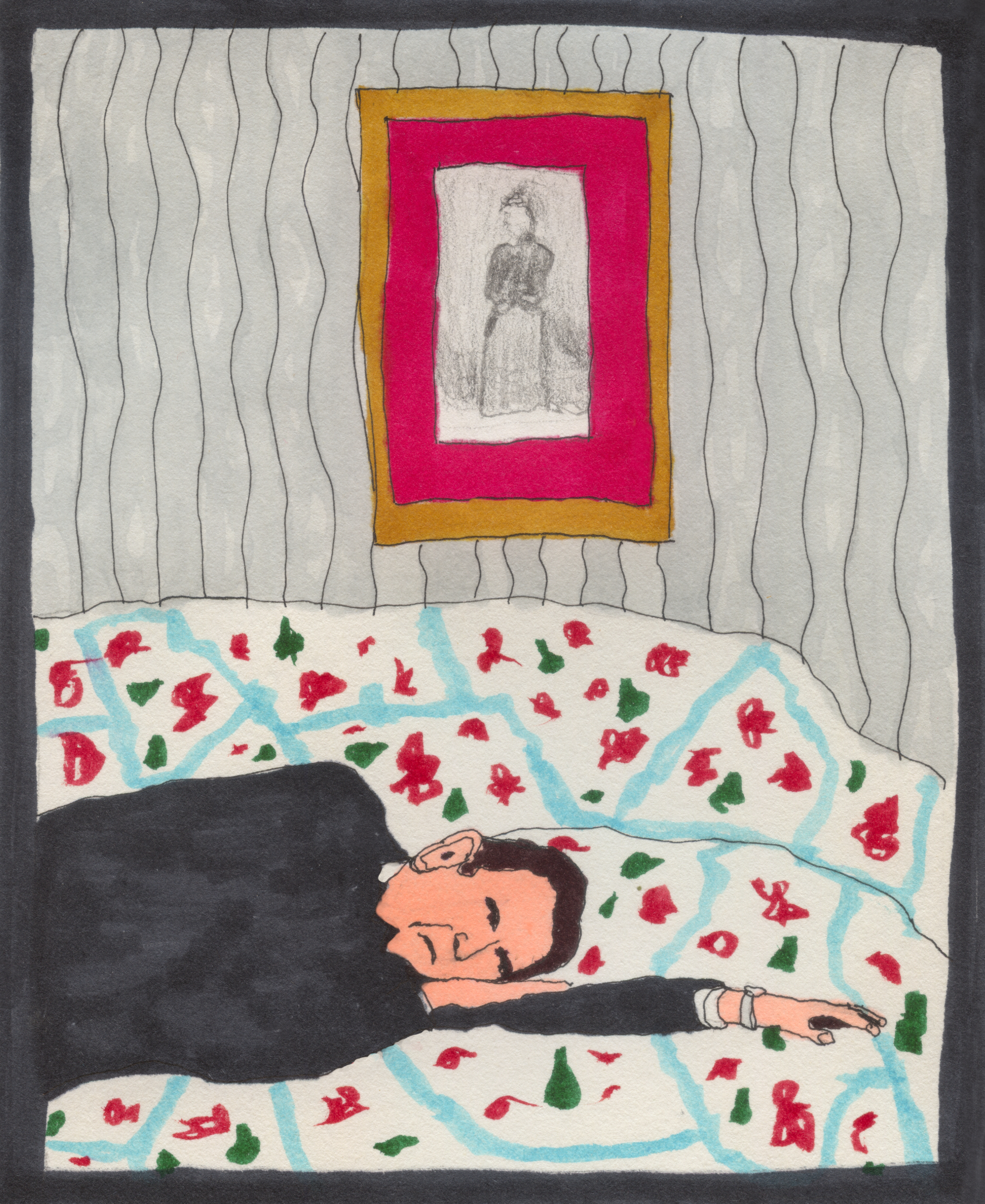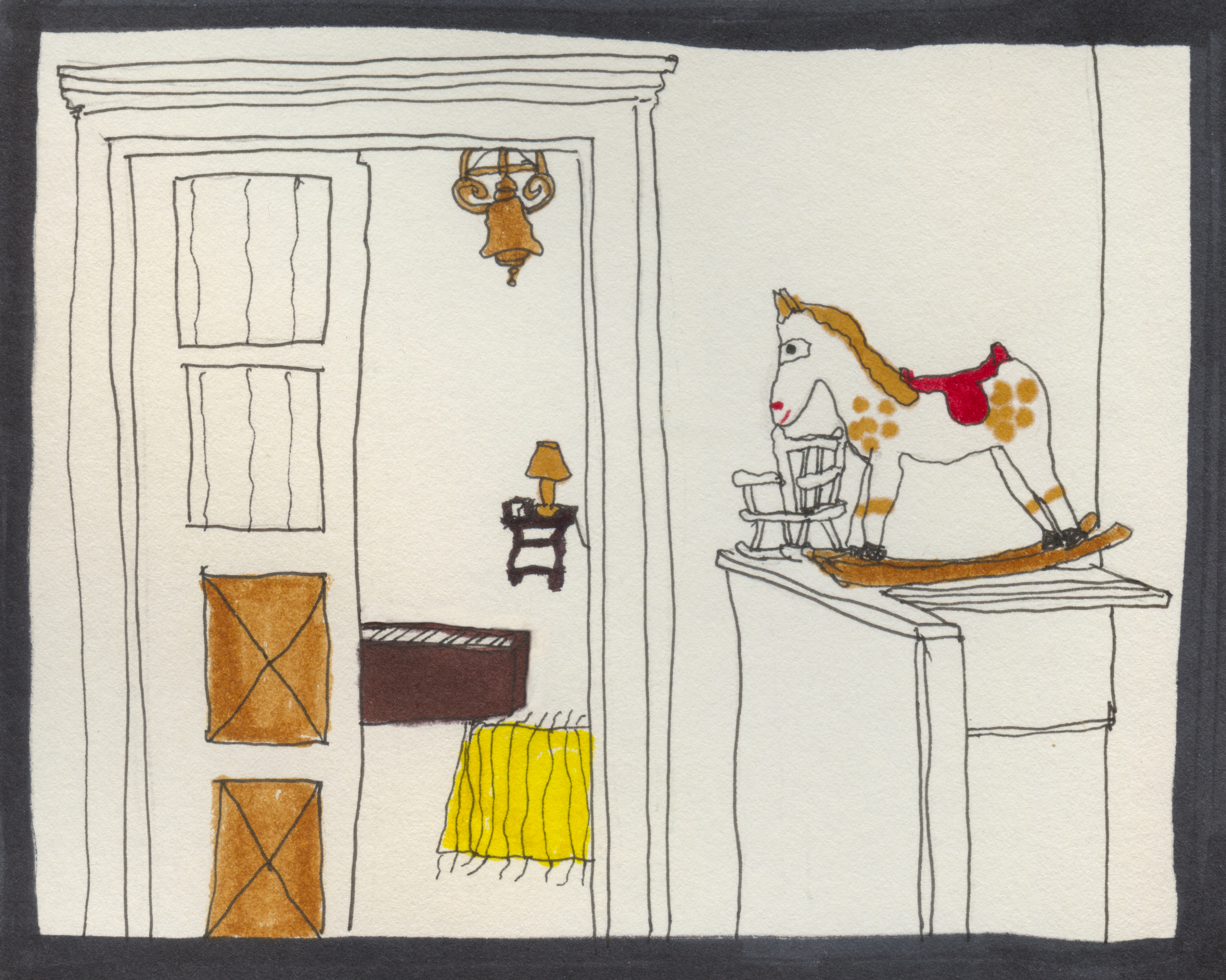 Sono sei le immagini disegnate da Paolo Drigo per questo progetto, We kill the flame: sei diapositive, una per ogni luogo della casa di Leonard Cohen. La sequenza segue il percorso cucina – salotto – bagno – camera dei bambini – camera da letto e giardino. È un viaggio attraverso un luogo e dentro uno spazio, quello del lutto. La mancanza di speranza, nucleo tematico della canzone di Cohen, è amplificata dalle immagini di Drigo che seguono un taglio fotografico, il ricordo di un fuori costantemente imprendibile. Il vuoto lasciato dall’assenza dell’amato si nomina attraverso gli oggetti. Il perturbante si sostituisce al quotidiano in un catalogo di stanze un tempo abitate nelle quali si aggira un protagonista senza volto né storia: