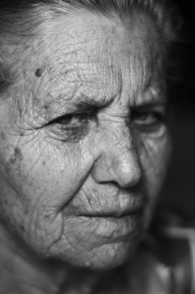 La fotografia, come la pittura e ogni altra forma di arte visuale, è rappresentazione: agisce per sostituzione, fa risorgere ciò che è sparito: come tale è un effetto perturbatore della realtà perché si mostra più vera del vero, più reale della vita che pretende di sostituire. Gli scatti di Michelle Pulerà rivelano questo specifico aspetto della fotografia, pongono l’osservatore in presenza di un’assenza. Il tema della vecchiaia, indagato in maniera allegorica, senza sottrarsi alla ripetizione e all’effetto cliché, più che patetico (nel senso etimologico del termine) appare estetico. È nel gioco dell’immagine che appare e scompare, che si sofferma sul dettaglio oppure lo aggira che si rivela lo sguardo della fotografa, la sua personale sostituzione della realtà con una rappresentazione più vera del vero. Qui il volto della donna anziana, soggetto della serie, perde individualità per farsi simbolo della vita che consuma se stessa attraverso lo svolgersi del tempo. Corrucciata, osserva con severità noi viventi, si chiude fino a stringersi su un’altra mano, altrettanto anziana e segnata. Non sappiamo nulla di lei e nemmeno siamo spinti a chiederlo: osserviamo l’immagine, stiamo nell’illusione, tolleriamo l’assenza.