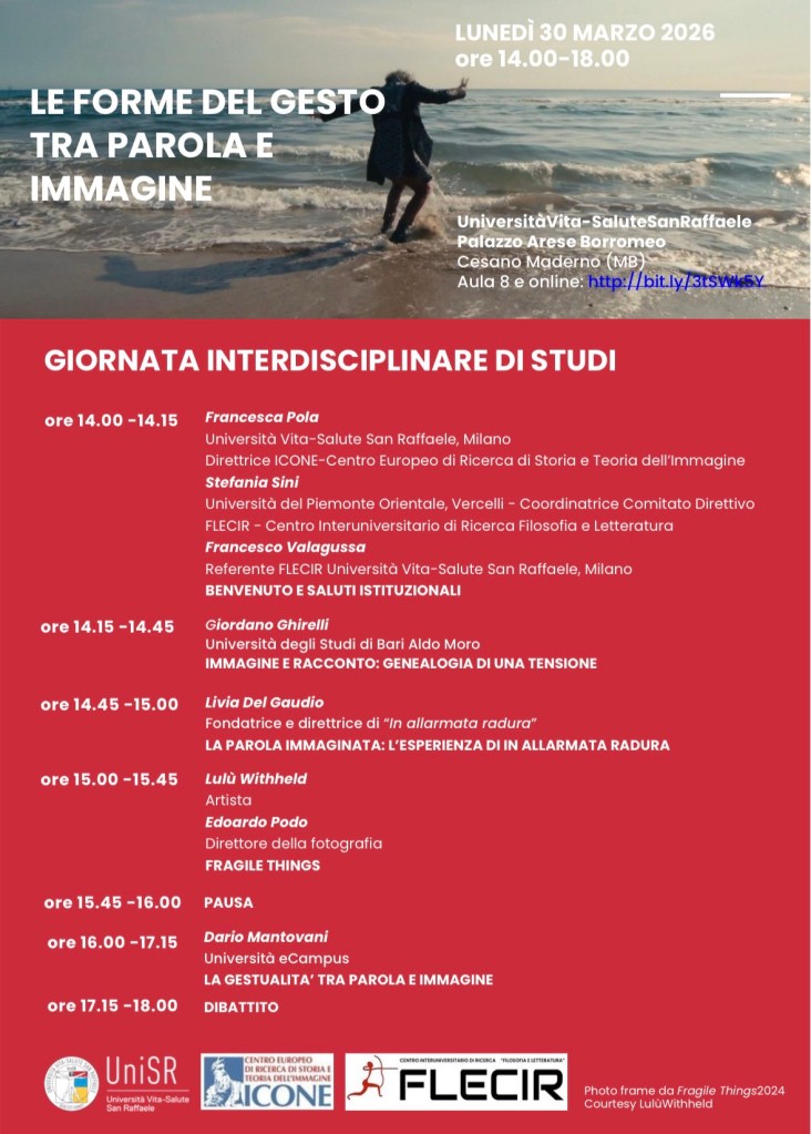 LE FORME DEL GESTO TRA PAROLA E IMMAGINE. Giornata interdisciplinare di studi. Lunedì 30 marzo 2026 dalle ore 14:00, Palazzo Arese Borromeo, Cesano Maderno (MB).