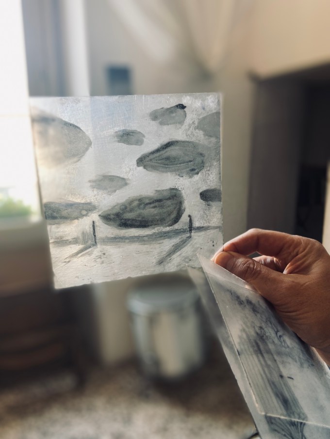 A footprint as a wave storm: we let the water surface gather itself and stop in the gaze.